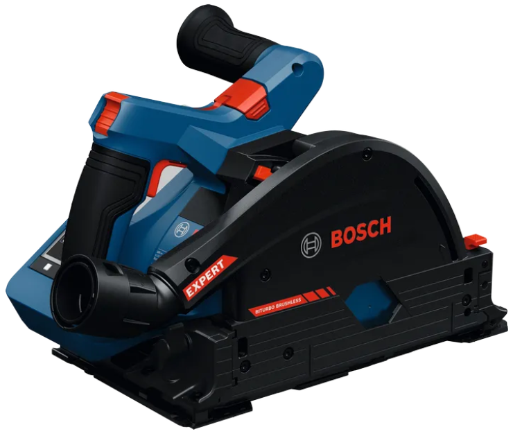 Die Tauchsäge EXPERT EXKT18V-52G bietet eine extrem kompakte Bauform und ermöglicht so einen minimalen Wandabstand mit Schnitten, die bis zu 10 mm an die Wand reichen. Mit dem integrierten BITURBO Brushless Hochleistungsmotor und -antriebssystem ist exzellente Leistung in Kombination mit EXPERT-Akkus garantiert. Diese kompakte Tauchsäge arbeitet mit nur einem 18V-Akku und bietet so hervorragende Mobilität. Der integrierte Click&Clean-Adapter wurde für Bosch-Absauglösungen entwickelt. Sie lässt sich leicht manövrieren und um 360 Grad drehen. Die EXPERT EXKT18V-52G ist mit unserer hervorragenden BOSCH FSN-Führungsschiene und anderen gängigen Systemen kompatibel. Die anwenderfreundliche HMI bietet verschiedene anpassbare Einstellungen: Geschwindigkeitsauswahl, Modusauswahl (z. B. ECO-Modus für längere Betriebszeiten mit einer Akkuladung) sowie Anzeigen für den Ladezustand des Akkus und den Gerätestatus – wie beispielsweise Überlastungsschutz. Diese Tauchsäge eignet sich für Tauchschnitte in Holz, Holzverbundwerkstoffen, Platten und Plattenwerkstoffen sowie in Aluminium und Acrylglas.