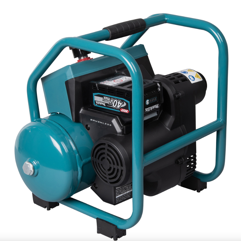 Der Makita AC001GZ ist ein leichter und tragbarer Kompressor, der nur 27,56 Pfund wiegt. Er ist einer der leichtesten kabellosen Kompressoren seiner Klasse. Er hat auch eine schnelle Nachfüllzeit von leer bis voll, die bis zu 20 % schneller ist als bei anderen Modellen.