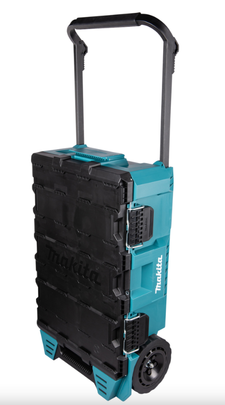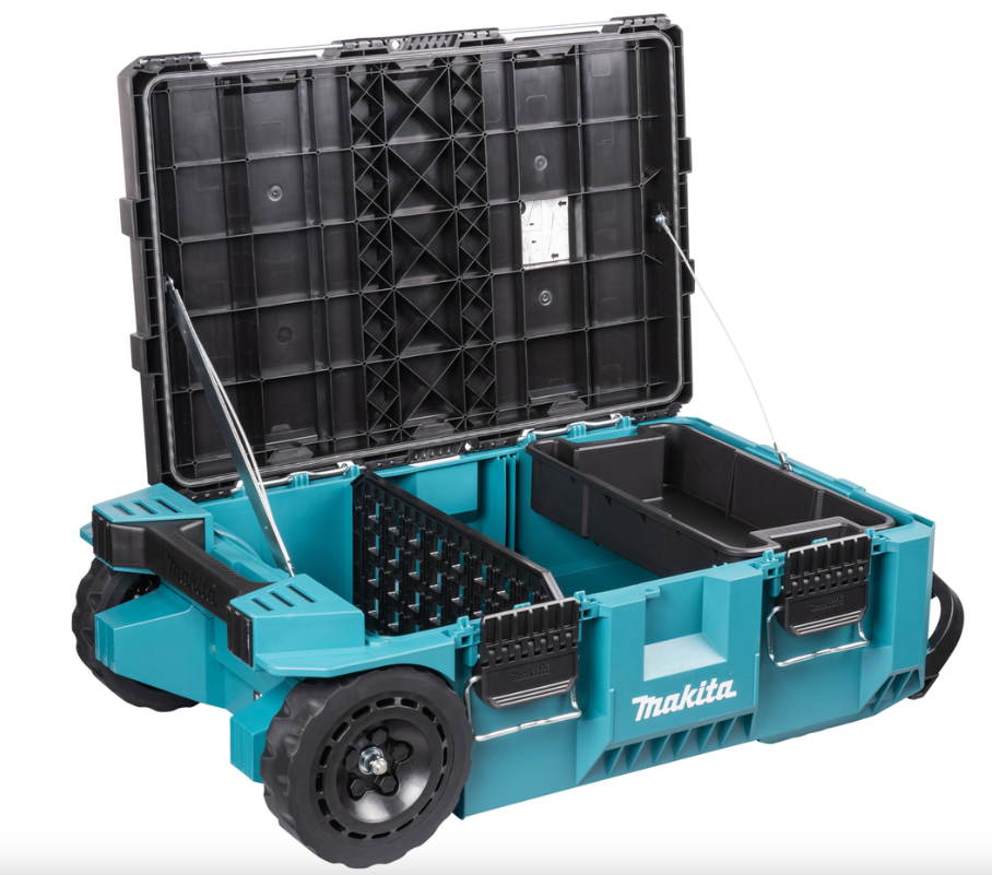 Die MAKTRAK Trolley Werkzeugbox L ist der mobile Helfer mit 81,9 Liter Volumen und bis zu 113 kg Tragkraft. Horizontale Bauform, Gecko‑Griff zum leichten Verladen, 23 cm Ø All-Terrain-Rädern und ideal für lange Werkzeuge, Ladegeräte und Akkus – modular erweiterbar und extrem robust.