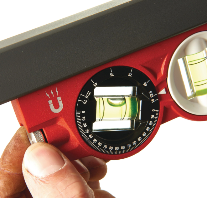 - Verstellbare 360°-Winkel-Libelle zum Messen und Übertragen von Winkeln. Libelle arretierbar für hohe Präzision, auch wenn die Wasserwaage zwischendurch in der Tasche verstaut wird